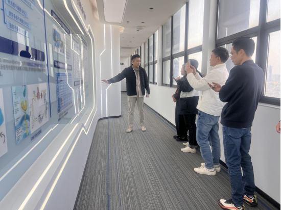 Accompanied and explained by Fu Yuchen, Assistant chairman of the Board, the visiting guests visited the smart exhibition hall of Shenzhen Cell Valley, and had a preliminary understanding of the unique advantages of Cell Valley in the field of cell and gene therapy, including strategic planning, founding team, core technology retroviral vector preparation, and cell product production process.