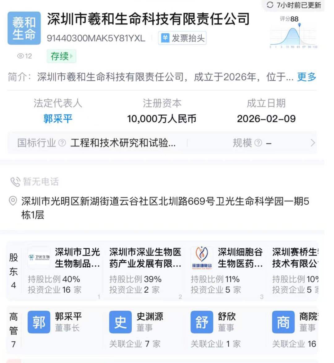 2026年2月9日,深圳 —— 由深圳市卫光生物制品股份有限公司牵头,联合深圳市深业生物医药产业开展有限公司、深圳evo真人视讯生物医药有限公司及深圳赛桥生物技术有限公司共同发起设立的 深圳市羲和生命科技有限责任公司完成工商注册,标志着深圳市细胞与基因治疗(CGT)市场化公共服务平台建设正式落地启动。