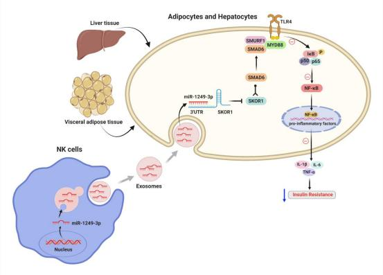 [1] Wang, Y., Li, M., Chen, L. et al. Natural killer cell-derived exosomal miR-1249-3p attenuates insulin resistance and inflammation in mouse models of type 2 diabetes. Sig Transduct Target Ther 6, 409 (2021).