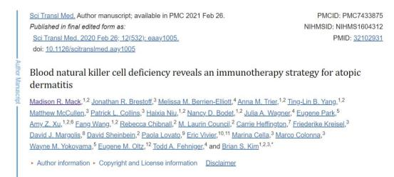 killer cell deficiency reveals an immunotherapy strategy for atopic dermatitis. Sci